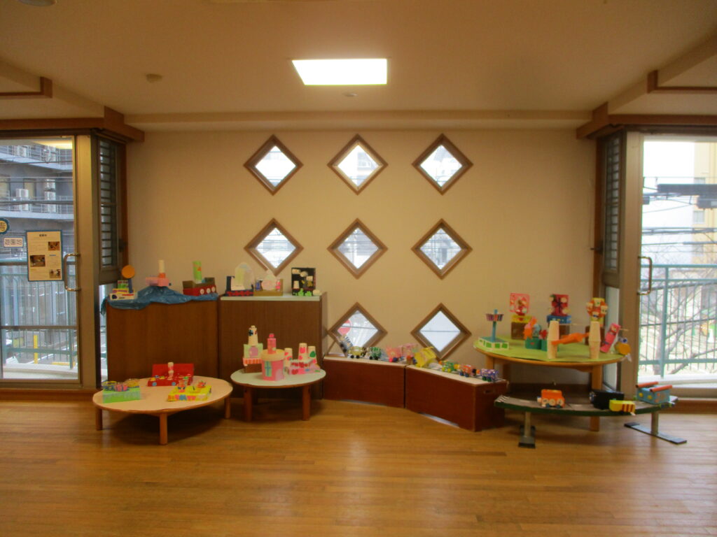4歳児 いろんな箱、素材を使ってみんなの街を作りました!