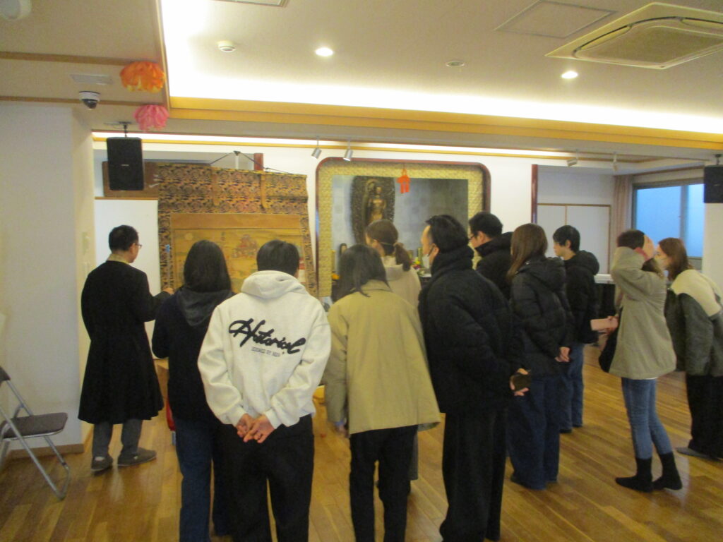 見学に来られた保護者の方々にも、涅槃絵図を見て頂きました。