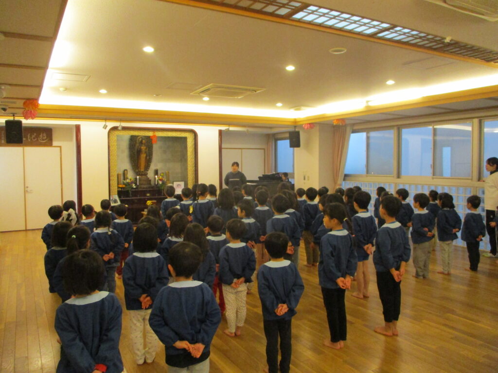 お話を聞いた後、子どもたちで、ねはんえの歌を歌いました。